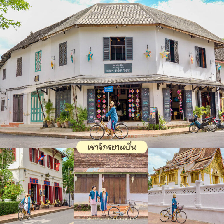 อีกหนึ่งกิจกรรมและถือเป็นเสน่ห์อีกอย่างหนึ่งของการมาเที่ยวหลวงพระบางเลยคือการปั่นจักรยาน เล่นรอบๆ เมือง ชมวิถีชีวิตบ้านเรือนและธรรมชาติ เราเลือกปั่นหลังจากตักบาตรเสร็จ เพราะอากาศยังเย็นสบาย
